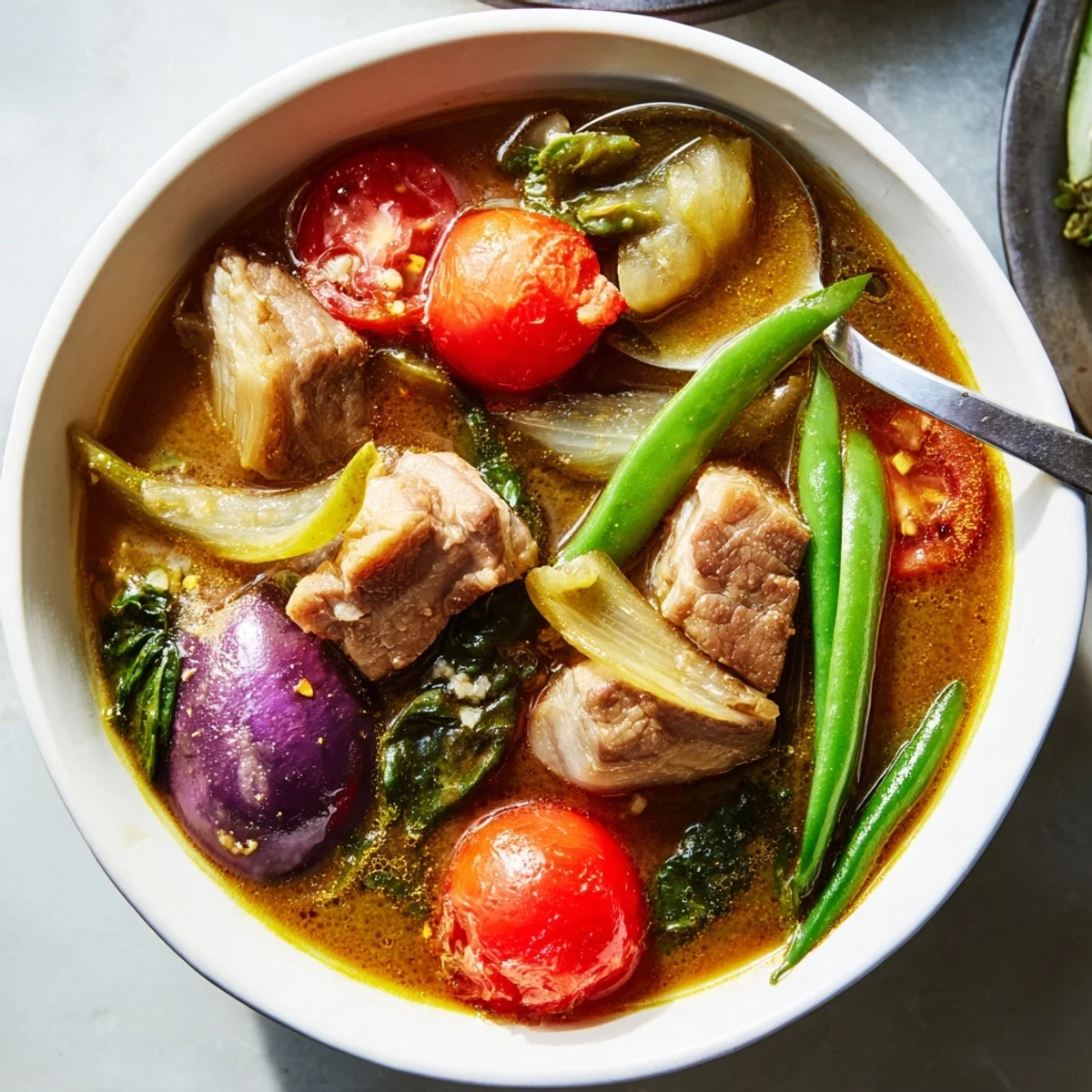 Absolutely. While pork belly and ribs are traditional choices, Sinigang works wonderfully with shrimp, fish, beef, or even chicken. Seafood versions are lighter and cook faster - add shrimp or fish during the last 10 minutes to maintain their texture.