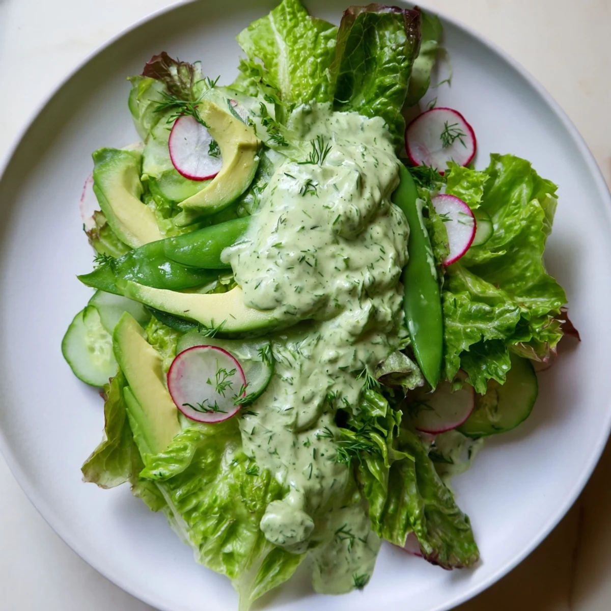 - Arrange the mixed greens as your base, then artfully scatter the cucumbers, snap peas, avocado, chives, and radishes across the top. Think of it as composing a painting rather than just tossing vegetables in a bowl.