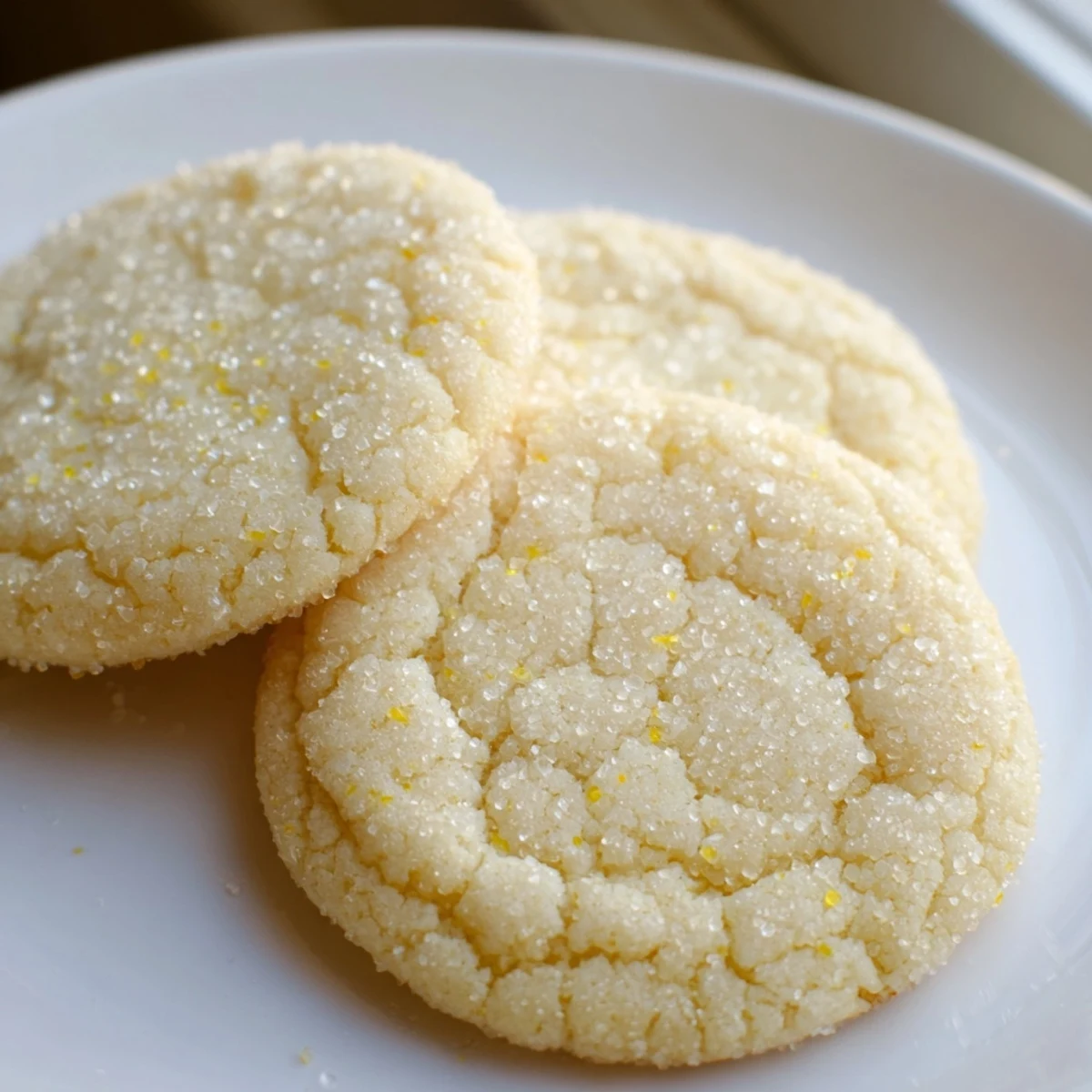 Crisp-edged, soft-centered lemon sugar cookies deliver bright citrus flavor through fresh lemon zest and juice. The dough comes together in just 15 minutes, then gets rolled in sparkling sugar before baking until edges turn golden brown.