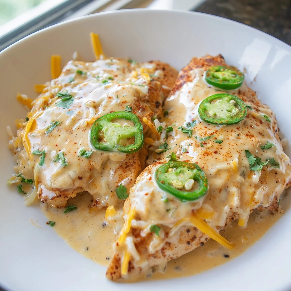 Prepare succulent chicken breasts seared to golden perfection, then simmered in a velvety sauce combining fresh jalapeño heat, aromatic garlic, and savory Monterey Jack cheese. This satisfying dish balances creamy textures with vibrant spice, creating an impressive centerpiece for weeknight dinners or casual entertaining.